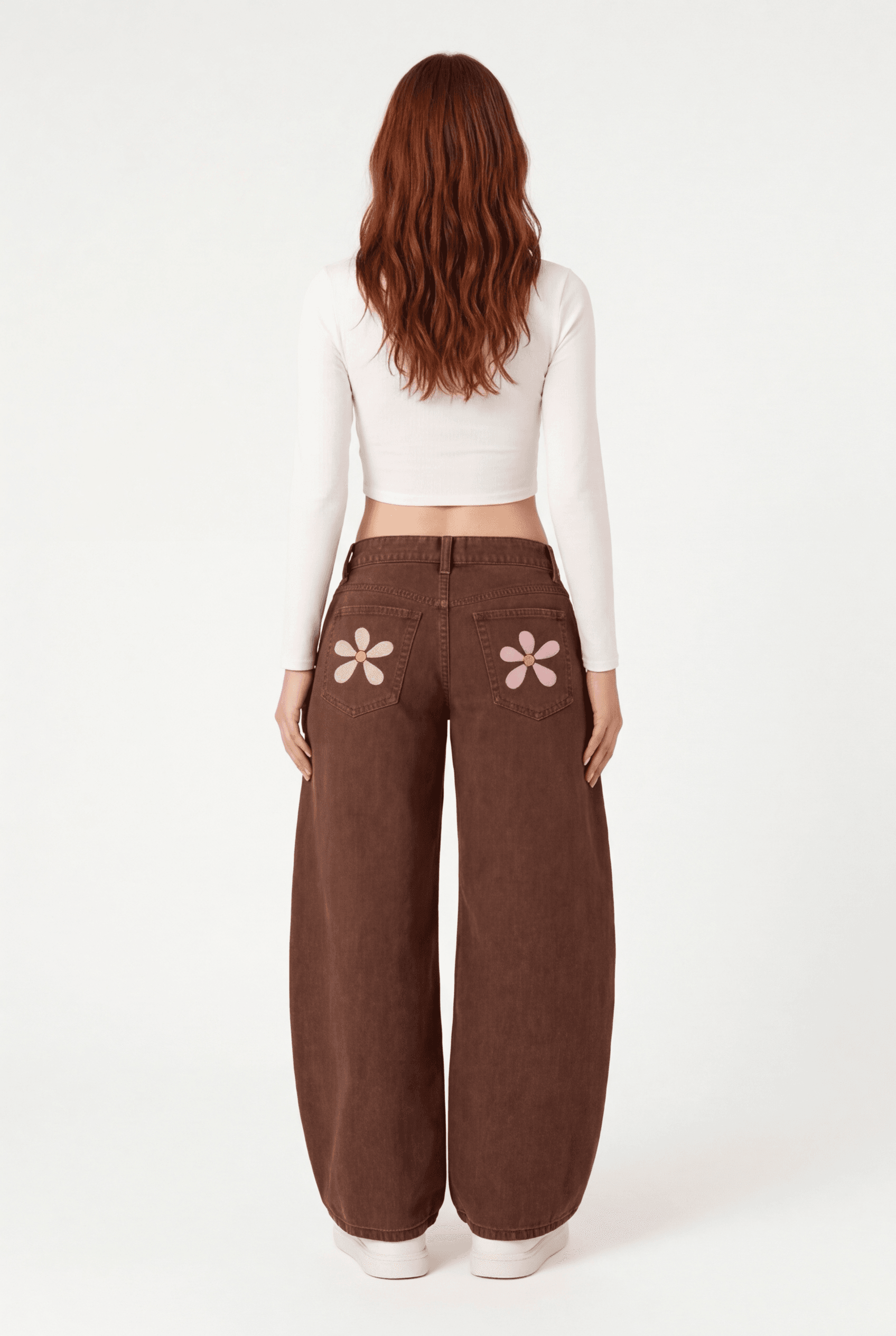 Daisy back brown è un jeans con dettagli floreali sul retro, perfetto per chi cerca un denim originale e ricercato. Il colore marrone caldo lo rende versatile e facile da abbinare, ideale per look casual, streetwear o outfit più femminili.